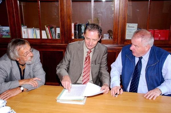 Bürgermeister Hanns-Michel Noll (re.) und SPD-Stadtrat Heinz Grimme (li.) Im Gespräch mit Landtagsmitglied Ronald Brachmann.